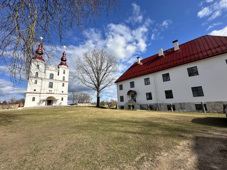 Skaistkalne Church is one of the largest and most beautiful rural churches in Latvia. The large white-painted three-aisled basilica, the western end of which was erected by two impressive towers during World War II, was one of the first early Baroque two-tower cathedral-type churches in Latvia. It became a kind of model for a number of Latgale Catholic churches built later.